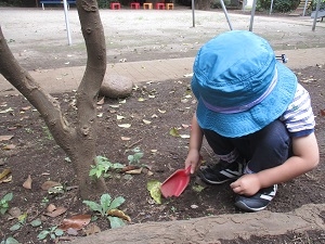 大きな木々に囲まれた幼稚園の広いお庭で、深まっていく秋の気配を感じながら親子で遊びましょう。